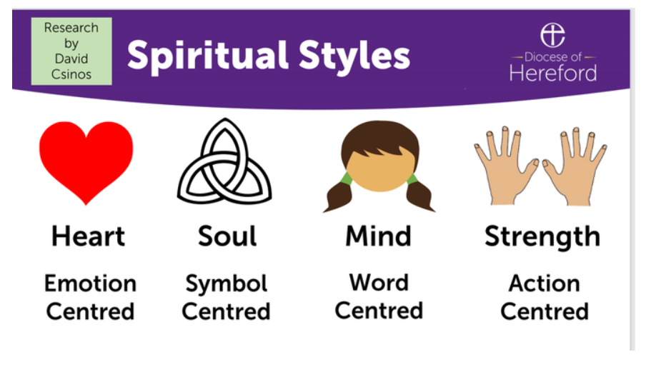 We have been finding out about the different spiritual styles that we may each have and ensuring that there is something for each of these spiritual learners throughout our school day.